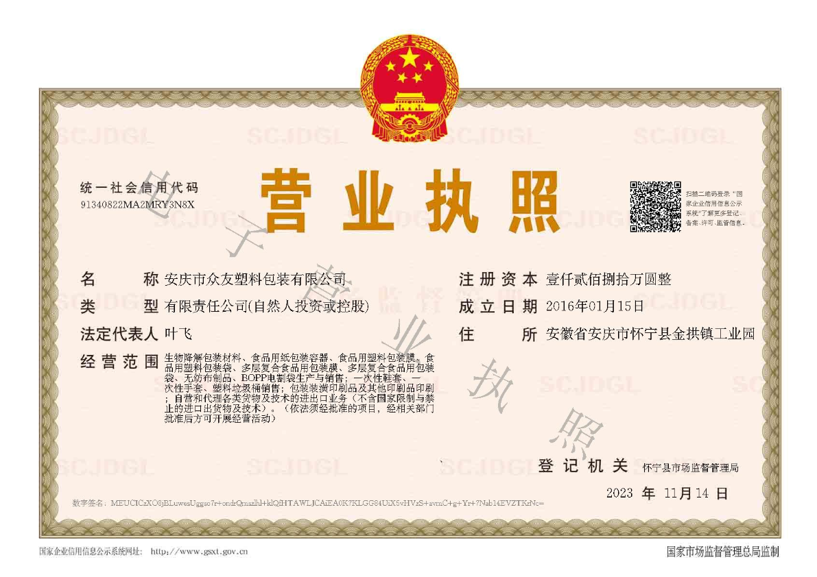 安慶市眾友塑料包裝有限公司是一家集研發(fā)、生產(chǎn)、銷(xiāo)售于一體的塑料袋制品企業(yè)。公司坐落在懷寧縣金拱鎮(zhèn)工業(yè)園,現(xiàn)已發(fā)展成為塑料包裝袋優(yōu)良企業(yè),悠久的歷史、成熟的技術(shù)、低廉的價(jià)格是本公司的特點(diǎn)。眾友塑料包裝擁有吹膜、印刷、制袋設(shè)備,一條龍生產(chǎn)超市購(gòu)物袋、超市連卷袋、食品復(fù)合袋、環(huán)保購(gòu)物袋、四指袋、高低壓工業(yè)包裝袋、無(wú)紡布袋、垃圾袋等,品種齊全。   我公司秉承“...